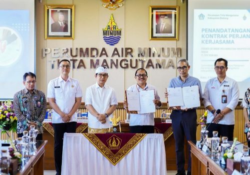 Penandatanganan dilangsungkan di Ruang Rapat Perumda Tirta Mangutama, Mengwi, disaksikan langsung oleh Bupati Badung I Wayan Adi Arnawa bersama jajaran pejabat terkait.