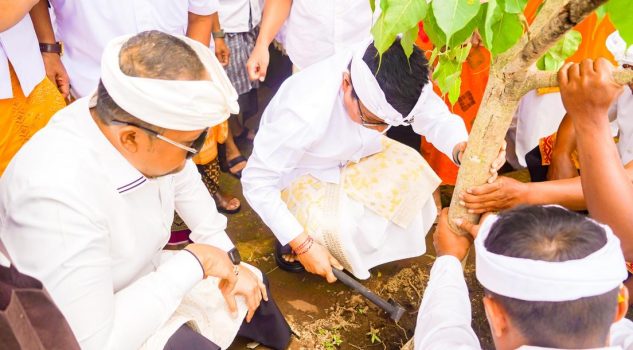 Bupati Adi Arnawa dan Wabup Bagus Alit Sucipta melaksanakan penanaman pohon di Jaba sisi Pura Penataran Agung Pucak Mangu