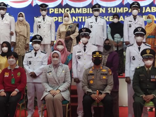 Selanjutkan, Bupati Rezita membacakan naskah pelantikan, resmi melantik puluhan kepala desa terpilih dari empat kecamatan.