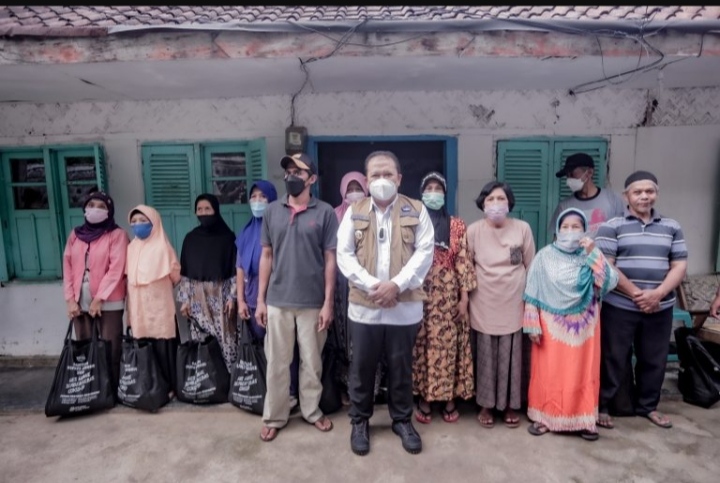 Dalam peninjauan lokasi tersebut, Bupati Hendy juga membagikan langsung paket bantuan kepada para warga sekitar. (Nurul)