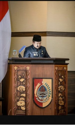 Bupati Jember, Ir. H. Hendy Siswanto menyampaikan nota pengantar Raperda APBD Jember T.A. 2022 di depan para anggota anggota DPRD Jember.