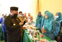 Disela-sela acara Bupati Kampar dan Sekda Kampar sempat meninjau Bazar hasil kerajinan dari ibu PKK dan masyarakat.**(Red/Diskominfo Kampar)
