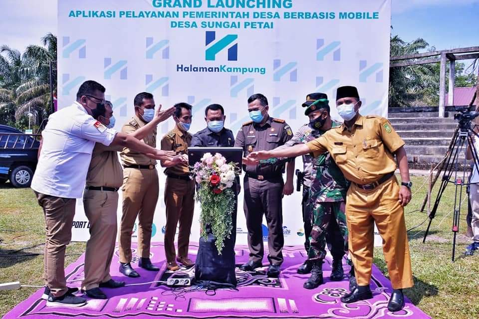 Kampar Kiri Hilir,- Bupati Kampar, H. Catur Sugeng susanto, SH, melakukan grand launching Halaman Kampung di Desa Sungai Petai Kecamatan Kampar Kiri Hilir, Selasa (6/4) yang merupakan aplikasi pelayanan pemerintahan desa berbasis mobile dengan pelayanan tanpa batas waktu dan jarak yang dapat di akses dengan mudah oleh masyarakat.