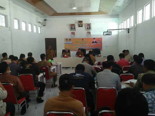 Tampak hadir, Staf Ahli Bupati Nias Barat Drs. Turuna Gulo, M.M., Plt.Asisten Bidang Pemkesra Yaatulo Zalukhu, S.AP., Kepala Bidang, Kepala Seksi/Kasubbag dan staf Kominfo serta perwakilan media calon mitra pemerintah Kabupaten Nias Barat (edy)