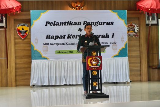 Persindonesia.Com,Klungkung – Bupati Klungkung, I Made Satria, menghadiri prosesi pelantikan Pengurus Majelis Ulama Indonesia Kabupaten Klungkung untuk periode 2025-2030, sekaligus membuka Rapat Kerja Daerah (Rakerda) I. Acara berlangsung dengan khidmat di Aula Kodim 1610 Klungkung, Selasa (10/2).