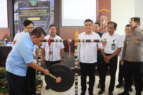 Persindonesia.com Jembrana – Bupati Jembrana I Nengah Tamba didampingi Wakilnya I Gede Ngurah Patriana Krisna (Ipat) membuka secara resmi Musrenbang dalam rangka penyusunan Rencana Kerja Pembangunan Daerah (RKPD) Semesta Berencana Kabupaten Jembrana tahun 2025, bertempat di Ruang Rapat Gedung Kesenian Ir. Soekarno, Rabu (27/3).