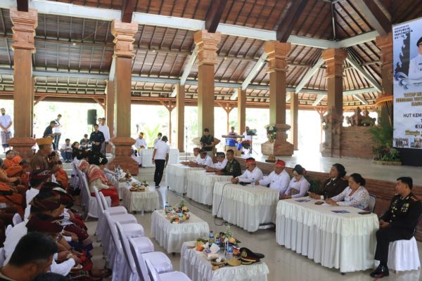 Persindonesia.com Jembrana – Bertepatan HUT ke-78 RI Bupati Jembrana I Nengah Tamba didampingi Ny. Candrawati Tamba bersama Wakil Bupati Jembrana IGN Patriana Krisna didampingi Ny. Inda Patriana dan Jajaran Forkopimda serta para Kepala OPD di Lingkungan Kabupaten Jembrana Gelar Tatap Muka dengan para Veteran dan Janda Veteran Kabupaten Jembrana, Kamis (17/8) di Wantilan Pura Jagatnatha