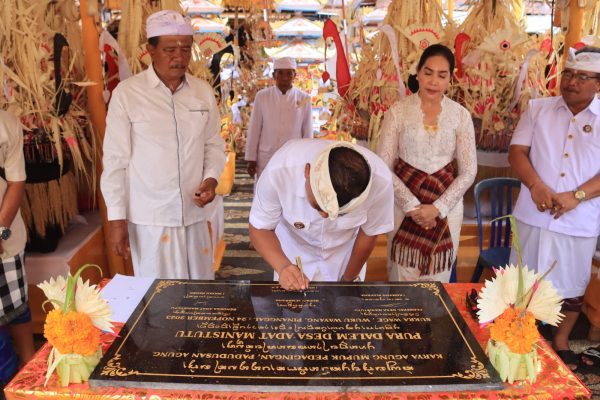 Selain melakukan persembahyangan, Bupati Tamba juga menandatangani Prasasti bersama Bendesa adat dan Perbekel Desa Manistutu. Hm