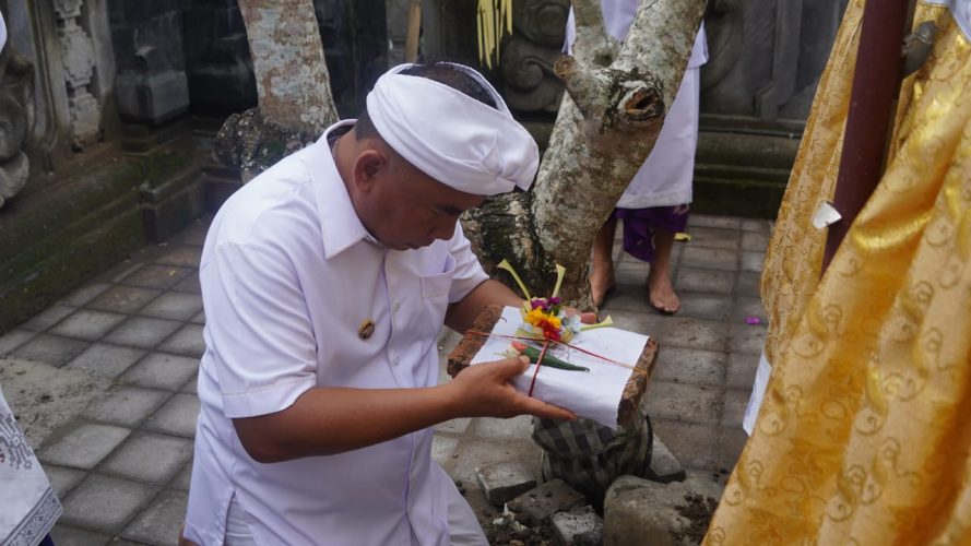 Prosesi upacara/upakara yang dituntun oleh Pemangku Made Susila Darma, Bupati Jembrana bersama Pj. Sekda I Nengah Ledang, para Asisten dan beberapa pimpinan OPD ikut bersama-sama menghaturkan sembah bhakti kehadapan Ida Betara yang berstana di padmasana pura setempat.