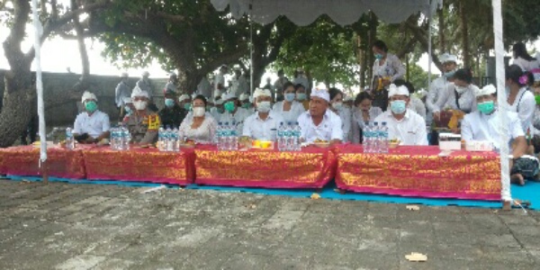“Setelah melaksanakan upakara mepepade dilanjutkan dengan prosesi pakelem larung sesajen ke tengah laut menggunakan jukung. Tujuan dari upacara tersebut mengacu pada peraturan PHDI pusat maupun daerah mengenai pencegahan virus covid-19,” ujarnya.