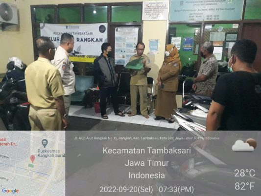 SURABAYA, Persindonesia.com,- Camat Tambaksari Ir. RR. Laksita Rini Sevriani, M.Si melakukan kunjungan kerja di kantor Kelurahan Rangkah pada hari Selasa, 20/9/2022 jam19.00 WIB