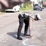 Jelang Nataru, Polres Gresik Tandai Jalan Berlubang Untuk Keselamatan Pengendara
