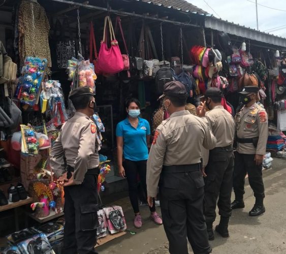 Dalam kegiatan tersebut personil jajaran Polres Jembrana menggencarkan himbauan kepada masyarakat agar masyarakat patuh dan taat dalam menerapkan prokes Covid-19.