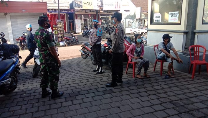 Persindonesia.com Jembrana – Mengantisipasi lonjakan penyebaran Covid-19 pasca libur lebaran, Koramil jajaran Kodim 1617/Jembrana bersama instansi terkait semakin intensif menggelar patroli bersama penegakan prokes dan sosialisasi vaksinasi kepada masyarakat. Patroli bersama pun digelar di masing masing wilayah dengan menyasar pusat perbelanjaan dan pelaku usaha.