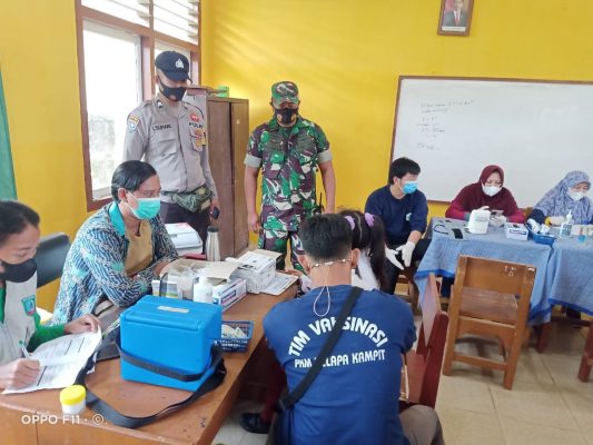 Kehadiran Babinsa Koramil 05/Kelapa Kampit untuk mendampingi serbuan vaksinasi bertujuan agar kegiatan tersebut berjalan dengan aman dan lancar.