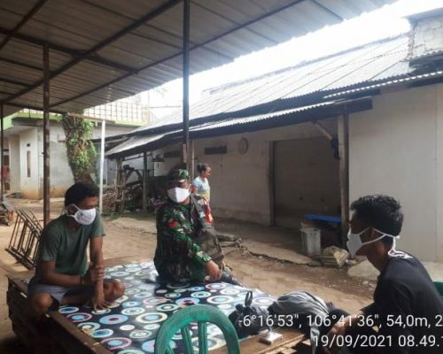 Kodam Jaya, Tangerang, Persindonesia.com – Untuk mencegah virus Covid 19, dua Babinsa Kelurahan Pondok Karya Koramil 07/PDA melakukan Komsos mengajak warga agar menjaga kesehatan tetap patuhi Prokes dan menggunakan masker.