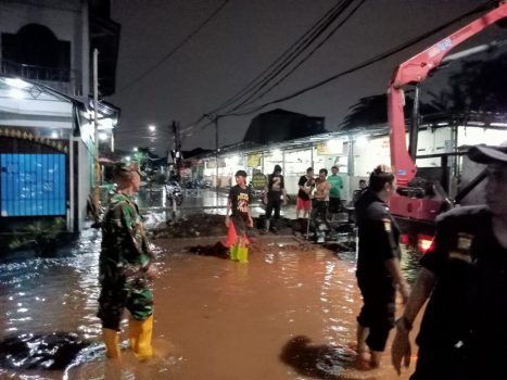 Cepat Tanggap, Personil Koramil Ciledug Monitoring Genangan Air
