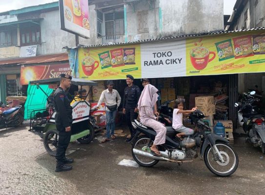 Persindonesia.com Sumsel, Sebanyak lima personel Kompi 2 Batalyon C Pelopor Korps Brimob Polda Sumsel dipimpin oleh Bripka Dodi Aljari, pagi ini terlihat menyambangi kios-kios pedagang yang berada di Kecamatan Tanjung Raja, Kabupaten Ogan Ilir, Sumatera Selatan. Jumat (6/1/2023).