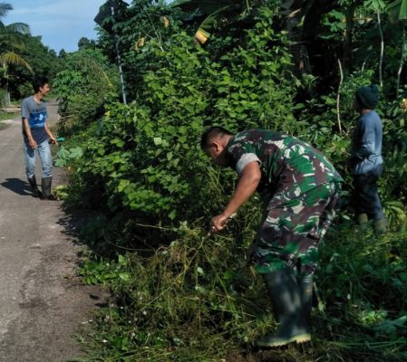 Ciptakan Kebersamaan,Babinsa Bersama Warga Gelar Kerja Bakti