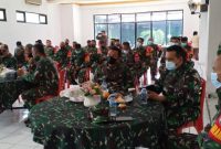 “Guna mendukung dan mewujudkan kemanunggalan TNI – Rakyat, diharapkan para Babinsa berpedoman pada Sapta Marga, Sumpah Prajurit dan 8 Wajib TNI, serta mampu mengimplementasikan makna tersebut dalam setiap pembinaan kewilayahan dalam mengayomi serta mampu memberikan solusi setiap permasalahan dilingkungan Binter dapat diatasi dengan aman dan kondusif.