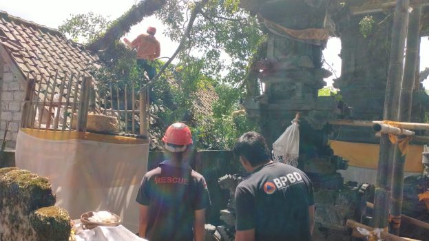 Kepala Pelaksana (Kalaksa) BPBD dan Damkar Bangli, I Wayan Wardana menyampaikan, setelah menerima informasi terkait adanya pohon tumbang tersebut pihaknya segera menuju lokasi. Berdasarkan hasil kaji TRC BPBD, dahan menyangga di salah satu Palinggih, sehingga diperlukan katrol untuk menopang agar tidak merusak bangunan Palinggih.