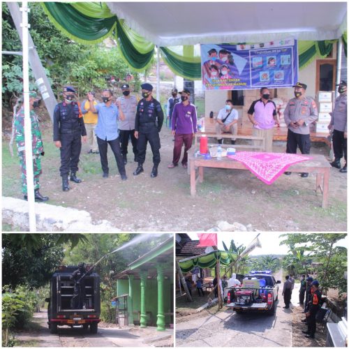 Dalam Rangka Memutus Penyebaran Covid-19 di Jawa Timur, Brimob Kelapadua Semprotkan Disinfektan