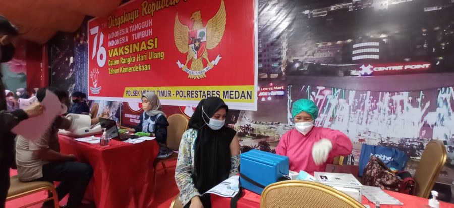 Persindonesia.com Deli Serdang – Dalam rangka menyambut HUT RI yang ke 76 Tahun, Polsek Percut Sei-Tuan laksanakan vaksinasi masal tahap ke 1 bertempat di Mako Polsek Percut Sei Tuan jalan Letda Sujono Bandar selamat, Jum’at (13/8/21).