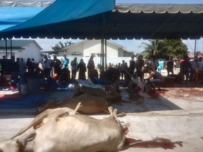 Dari pantauan awak media, di lapangan tampak begitu antusiasnya ketua dan anggota Panitia Qur’ban, Desa Sei Rotan, kecamatan Percut Sei Tuan, mulai dari selesai Sholat Idul Adha berjama’ah, seluruh panitia sudah mulai menyembelih hewan Qur’ban. Selasa pagi pukul 09.00 wib (20/7/21)