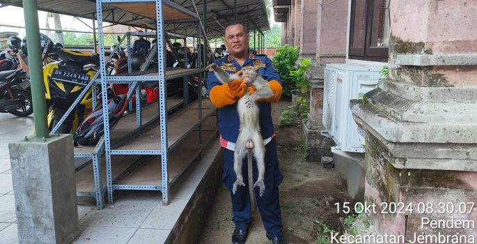 Persindonesia.com Jembrana – Seekor monyet dengan panjang 60 cm dengan berat 4 kg yang telah diamankan sebelumnya oleh Damkar Kabupaten Jembrana terlepas dari kandanganya dan melarikan diri ke Kantor Kantor Inspektorat Jembrana pada Selasa (15/10/2024) sekira pukul 08.00 wita. penangkapan dibantu oleh Keswan Kesmavet Jembrana.