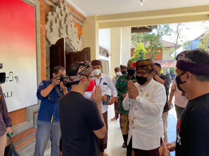 Denpasar – Wakil Gubernur Bali Prof.Dr.Tjokorda Oka Artha Ardhana Sukawati mendampingi Menteri Pendidikan, Kebudayaan, Riset dan Teknologi (Mendikbudristek) RI Nadiem Anwar Makarim melakukan dialog terkait potensi pendidikan vokasi di Kampus Politeknik Negeri Bali- Jimbaran, pada Kamis (7/10).