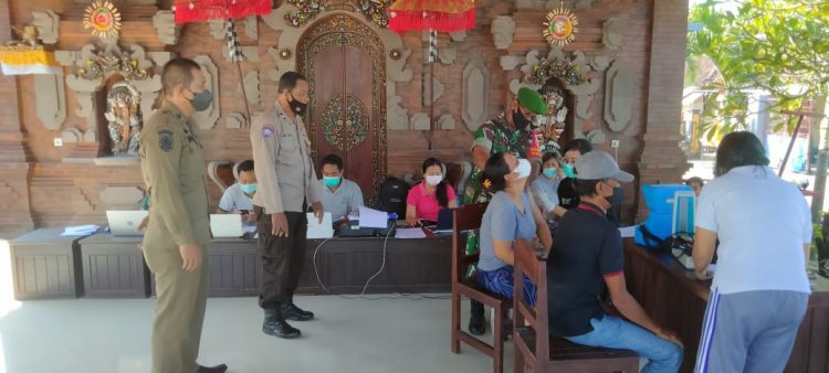 Terpantau hari ini vaksinasi yang digelar oleh petugas kesehatan dari Puskesmas I Jembrana berlangsung di Banjar Batuagung, Desa Batuagung Kecamatan Jembrana. Vaksinasi tersebut mendapat pendampingan dan pengamanan oleh Babinsa dan Bhabinktimbams, Selasa (05/07/2022)