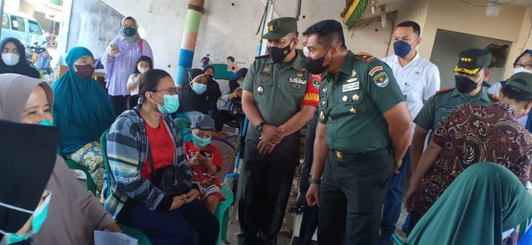 Persindonesia.com Kodam Jaya, Dandim 0505/Jakarta Timur Kolonel Inf Persada Alam bersama Danramil 06/Cakung Kapten Inf Sayidan SE dampingi kunjungan Danrem 051/Wkt Brigjen TNI Yustinus Nono Yulianto SE. M.Si dalam rangka kegiatan percepatan Serbuan vaksinasi di RT.011/08 jln. Waru doyong Kelurahan Jatinegara Kecamatan Cakung, Rabu (06/04/22).