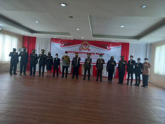 Komandan Kodim 0506/Tangerang Kolonel Inf Bambang Hery Tugiyono, S.IP, turut hadir bersama Forkopimda Tangerang Selatan saat pelaksanaan Upacara HUT Bhayangkara Ke 75 yang digelar secara virtual itu.