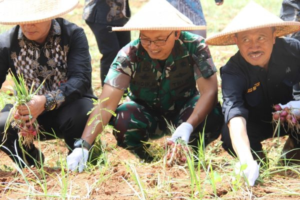 Kodam Jaya, Tangerang,Persindonesia.com – Danrem 052/Wkr Brigjen TNI Putranto Gatot S.H, S.Sos didampingi Danrem 0506/ Tangerang Letkol Inf Endik Hendra Sandi S.sos,M.I.Pol bersama Kadis Ketahanan Pangan dan Perikanan melakukan Panen Raya Bawang Merah Perdana Kota Tangerang Selatan tahun 2024. Panen raya ini dilaksanakan di Kawasan Pertanian Terpadu Kantor Dinas Ketahanan Pangan Pertanian dan Perikanan Tandon Ciater, Kel.Ciater, Kec.Serpong Kota Tangerang Selatan, Kamis (22/02/2024).