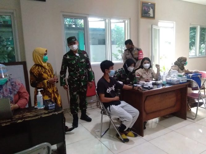 Dilokasi, Dandim melihat langsung pelaksanaan Vaksinasi dan meminta kepada petugas penyelenggara agar kegiatan vaksinasi tetap mengkedepankan protokol kesehatan saat melayani masyarakat penerima vaksin.