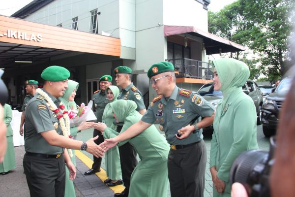 Sesampainya di lobby Makorem diterima langsung oleh Pejabat Lama Danrem 052/Wkr , Brigjen TNI Putranto Gatot SH,S.Sos.,M.M. di dampingi Ny. Henny Putranto Gatot.