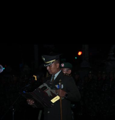 Selaku Inspektur Upacara Dandim 1617/ Jembrana Letkol Inf.Teguh Dwi Raharja, S.sos langsung membacakan kata-kata penghormatan, kepada sekitar 81 pahlawan dan teladan negara yang bersemayam, di tempat Makam Pahlawan Kesatrian Kusuma Mandala. Suasana malam lampu dimatikan dan hanya mengandalkan cahaya obor serta hujan rinti-rintik turun, hingga membasahi seluruh peserta upacara tepat pukul 00 00 WITA.