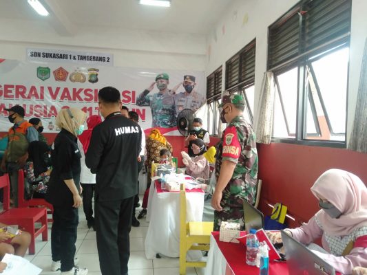 Kodam Jaya, Tangerang, Persindonesia.com – Komandan Kodim 0506/Tgr Kolonel Inf Puji Hartono di wakili oleh Danramil 01/Tgr Mayor Kav Andi Budiman S.Sos dampingi Kapolres Metro Tangkot Kombes Pol Deoniju De Fatima S.ik.SH melaksanakan monitoring Louncing Serbuan Vaksinasi TNI/Polri untuk Usia 6 – 11 tahun di SDN Sukasari 1 dan Sukasari 2 Tangerang Jl.A.Damyati, Kel.Sukarasa, Kec.Tangerang Kota Tangerang, Rabu (15/12/2021).