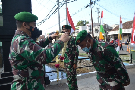 Tegal – Dandim 0712/Tegal Letkol Inf Sutan Pandapotan Siregar, S.I.P. pada acara penerimaan warga baru Perwira Penghubung (Pa Bung) Kodim 0712/Tegal, Senin (02/08/21) Jl. Raya Pagongan Kecamatan Dukuhturi, dengan tegas menyampaikan, acara tradisi satuan dapat dimaknai sebagai wujud ketulusan dan kehormatan satuan dalam menerima pejabat baru dan anggota Purna Satgaster ke medan operasi,