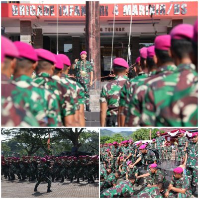 Persindonesia.com (Lampung). Komandan Korps Marinir (Dankormar) Mayor Jenderal TNI (Mar) Nur Alamsyah, S.E., M.M., M.Tr. (Han). hadir di tengah-tengah prajurit petarung Harimau Sumatera untuk memberikan semangat, Kegembiraan dan Kedigdayaan para Prajurit Korps Baret Ungu yang dikemas dalam suatu kegiatan Entry Briefing Komandan Korps Marinir di Lapangan Markas Komando (Mako) Brigif 4 Marinir/BS Piabung, Padang Cermin, Pesawaran Lampung.