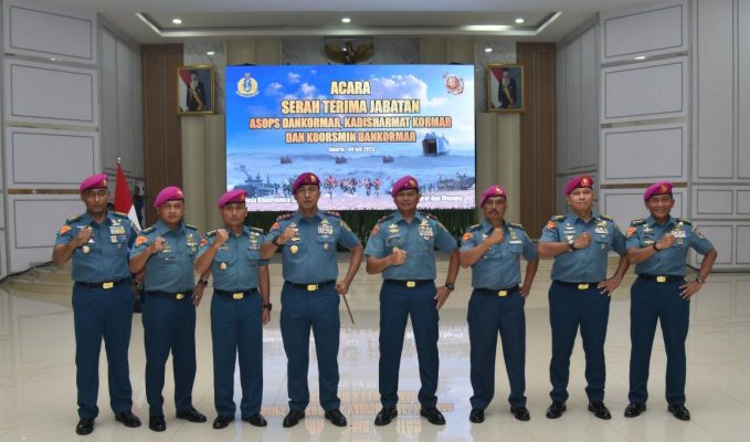 Persindonesia.com Dispen Kormar Jakarta, Komandan Korps Marinir (Dankormar), Mayjen TNI (Mar) Nur Alamsyah, S.E., M.M., M.Tr. (Han) memimpin serah terima tiga jabatan strategis yaitu Asisten Operasi Komandan Korps Marinir (Asops Dankormar), Kepala Dinas Pemeliharaan dan Material Korps Marinir (Kadisharmat Kormar) dan Koordinator Staf Administrasi Komandan Korps Marinir (Koorsmin Dankormar) yang dilaksanakan di Gedung Graha Markas Komando Korps Marinir. Jl. Prajurit KKO Usman Dan Harun no. 40 Kwitang Jakarta Pusat, Selasa (04/06/2023).