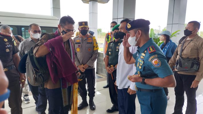 Persindonesia.com Pangkalpinang – Danlanal Bangka Belitung Letkol Laut (P) Dadan Hamdani, S.Tr. Hanla., CTMP., CRMP., CIQaR mendampingi Gubernur Provinsi Kep Babel Dr. H. Erzaldi Rosman, S.E, M.M bersama unsur Forkopimda Prov.Kep.Babel menyambut kedatangan menteri Pariwisata dan Ekonomi Kreatif RI Bapak Sandiaga Uno di ruang VIP Bandara Depati Amir Pangkalpinang, Rabu 20/04/2022.