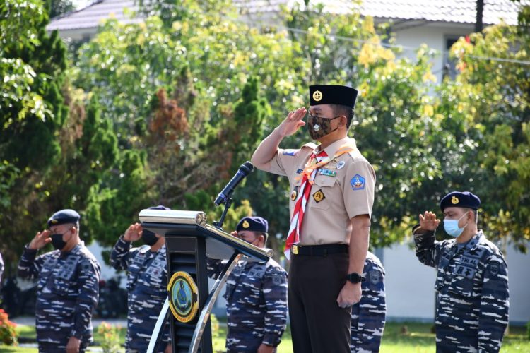 Sebanyak 39 anggota Pramuka Saka Bahari Prov. Kep. Bangka Belitung mengikuti program yang digelar di Mako Lanal Babel Jl.Tanjung gudang Kec.Belinyu Kab.Bangka dengan tetap menerapkan prokes,Selasa, 26 Oktober 2021.