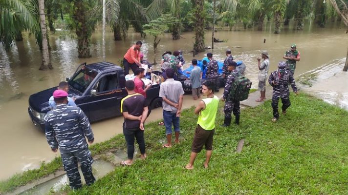 Komandan Pangkalan TNI AL Lhokseumawe Kolonel Marinir Dian Suryansyah, melalui Dansatgas Banjir untuk segera membantu dan memberikan Bantuan Logistik /Sembako Kepada Warga yang Terisolir.