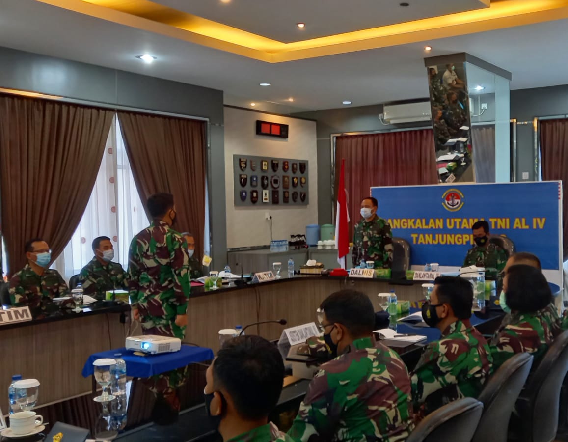 TANJUNGPINANG, Persindonesia.com Komandan Pangkalan Utama TNI Angkatan Laut (Danlantamal) IV Tanjungpinang Laksamana Pertama TNI Indarto Budiarto, S.E., M.Han., pimpin pembacaan taklimat awal Pangkoarmada I Pengawasan dan Pemerikasaan (Wasrik) dari Inspektorat Komando Armada (Itkoarmada) I yang berlangsung di Ruang Rapat Mako Lantamal IV Jl. Yos Sudarso No.1 Batu Hitam Tanjungpinang Kepulauan Riau, Senin siang (12/4/2021).