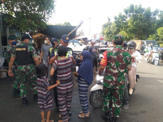Selain itu, anggota Koramil 01/Tgr memberikan masker kepada melanggar protokol kesehatan sekaligus menyampaikan himbauan agar tetap melaksanakan Protokol Kesehatan dalam menjalankan aktifitas di pasar.