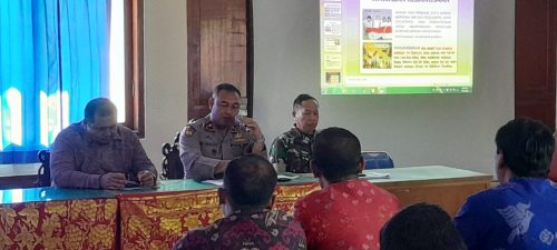 Persindonesia.com Jembrana,Danramil 1617-02/Mendoyo Mayor Inf (Har) Agus Muhid memberikan Sosialisasi Wawasan Kebangsaan dan Ketahanan Pangan Nasional kepada para Kelian Dinas dan para Kaling seKecamatan Mendoyo, Kegiatan tersebut dilaksanakan di Kantor Camat Mendoyo, Banjar Dauh Pasar, Desa Pergung, Kecamatan Mendoyo, Kabupaten Jembrana, Selasa (18/04/2023).
