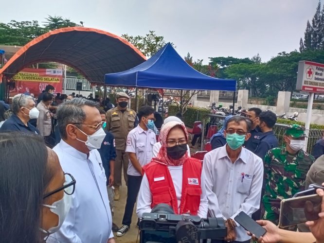 Di tempat yang sama Hj. Airin Rachmi Diany S.H.M.H Kepala PMI Tangsel menambahkan,Allhamdulillah hari ni sudah banyak antri Untuk Vaksinasi, Pemerintah Tangsel mensuport sudah membantu