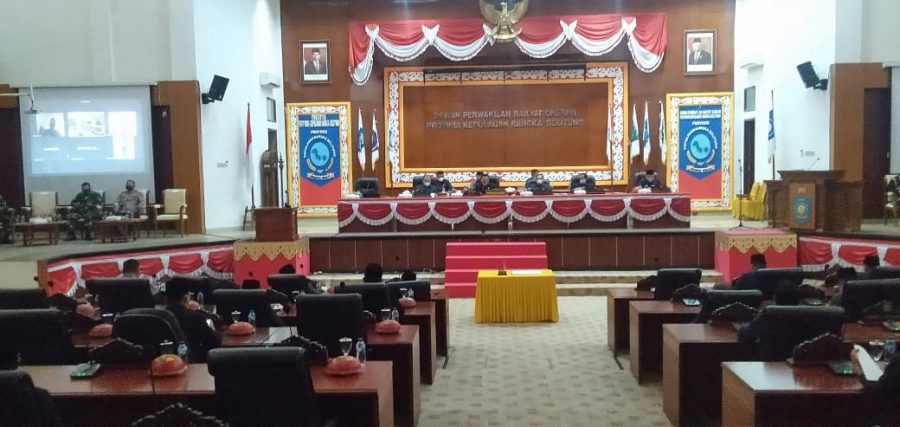 Penyampaian RAPBD tahun anggaran 2022 dilanjutkan Paripurna Pengambilan Keputusan Terhadap 3 Raperda dan Pansus Raperda yang di pimpin oleh Ketua DPRD Provinsi Babel Herman Suhadi.
