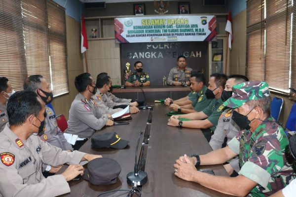 Disela-sela kunjungan ke Koramil 413-04/Koba Danrem menyempatkan diri berkunjung menuju Mapolres Bangka Tengah dan disambut oleh Kapolres Bangka Tengah AKBP Moch Risya Mustario SIK., SH., MH). Pada kegiatan tersebut Danrem 045/Gaya mengatakan ucapan terimakasih atas sinergitas yang selama ini terjalin antara pihak Polri dan TNI terutama dalam mendukung pemerintahan daerah untuk peningkatan pertumbuhan ekonomi di wilayah dengan memberikan rasa aman kepada masyarakat sehingga masyarkat dapat melaksanakan kegitan sehari hari dengan baik.